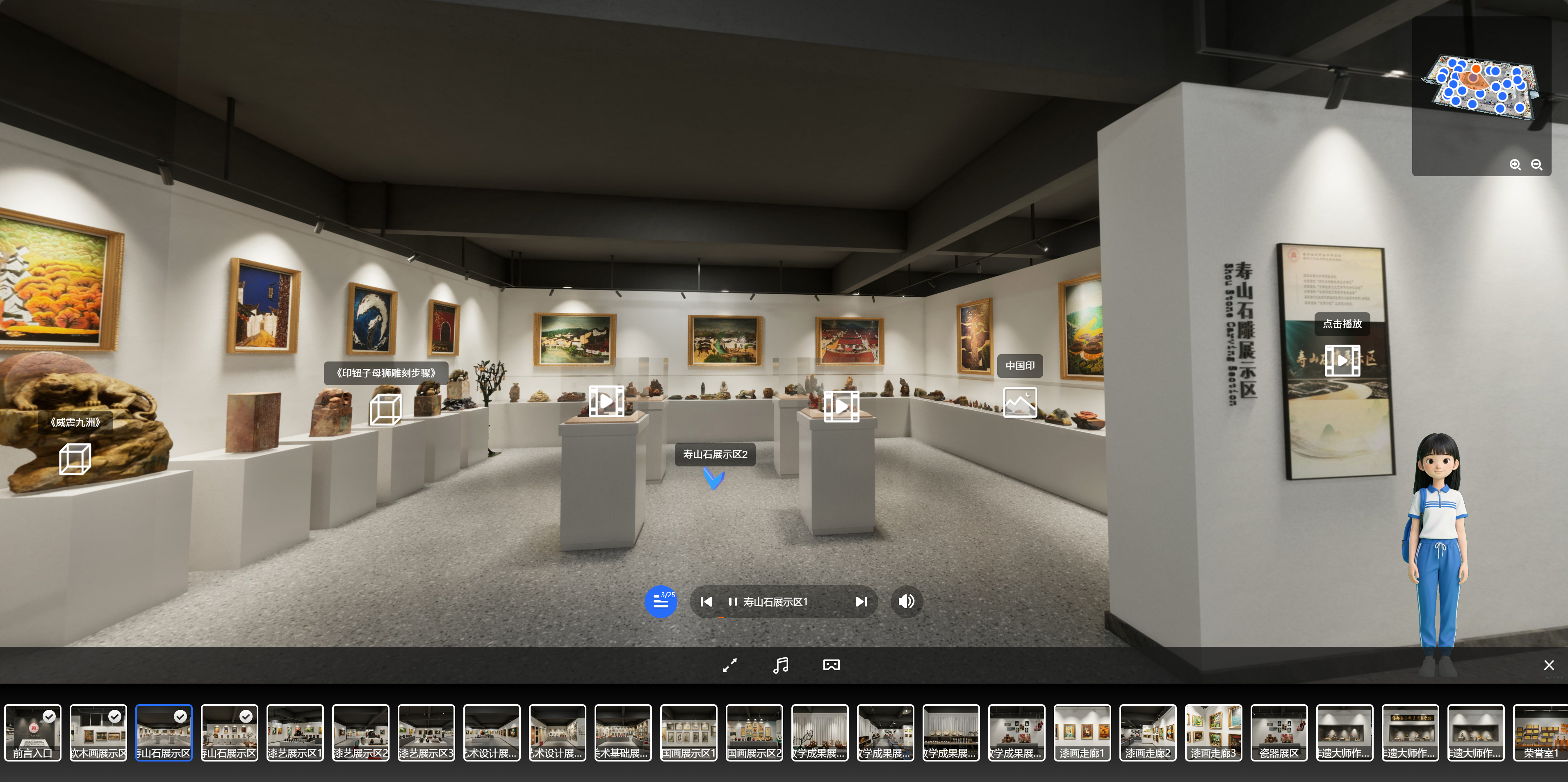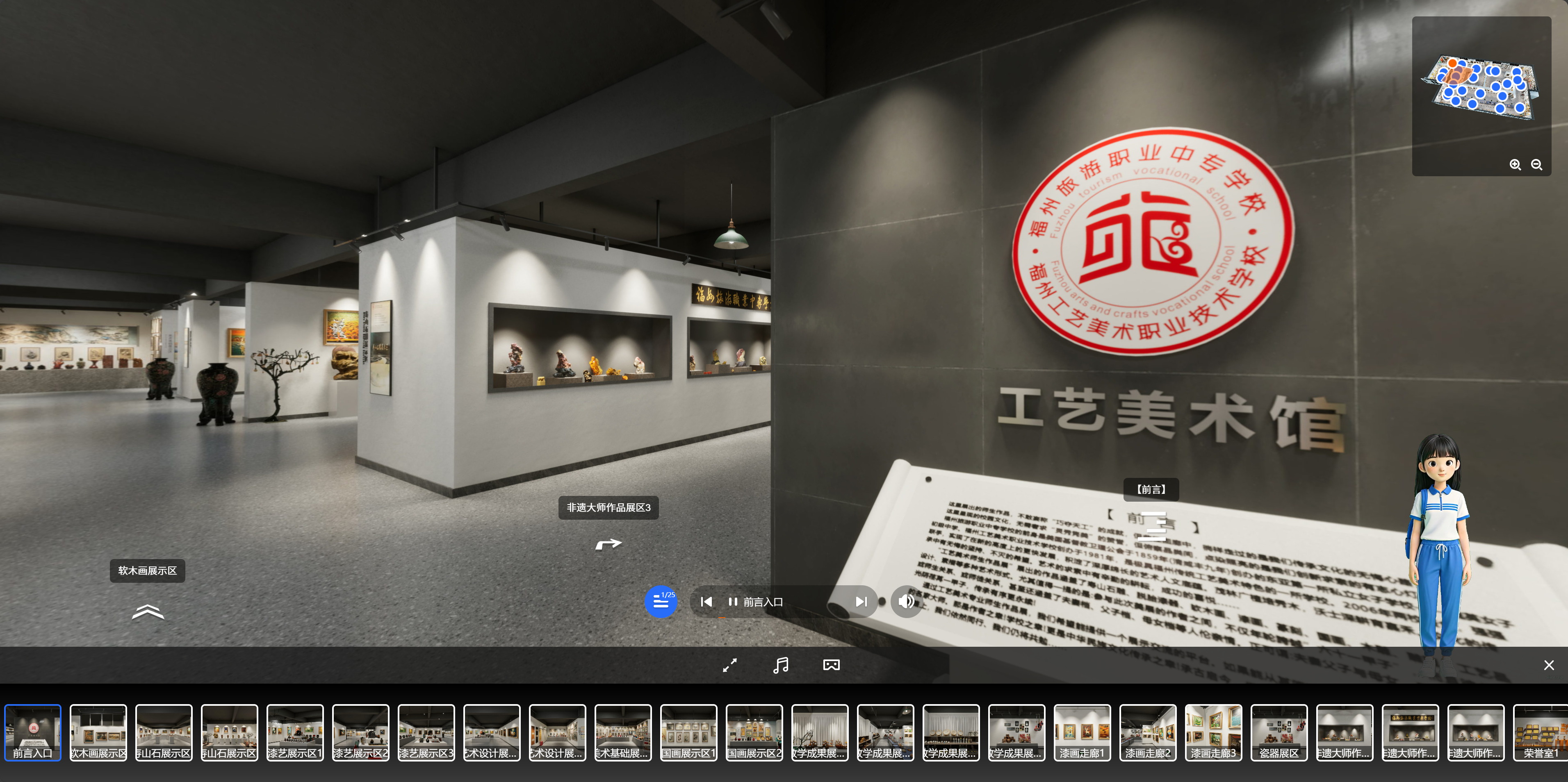 - 自由漫游模式:支持「自动导览」(跟随讲解逛展)+「自由探索」(自主停留、缩放画面、360° 环绕查看展品),打破线下观展视角限制;